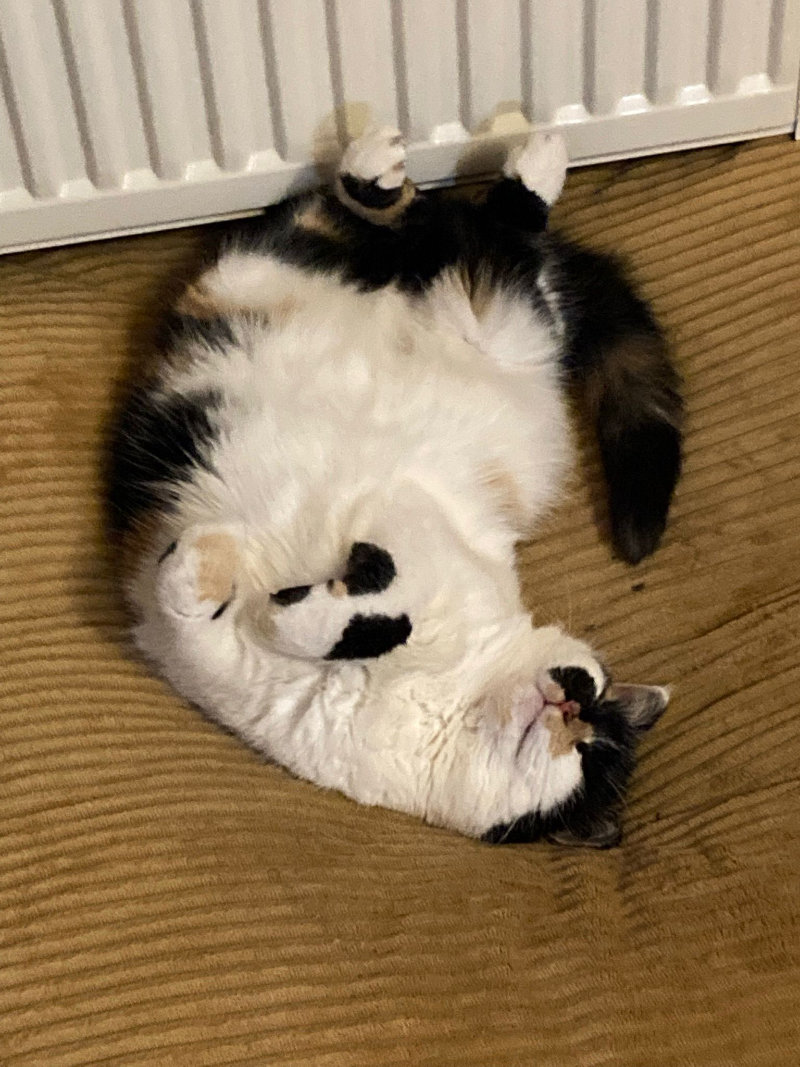 Dazzle is an old lady at 16 years old and loves to snooze in warm spots. But don’t let her fool you, she will take on a dog three times her size if cornered!