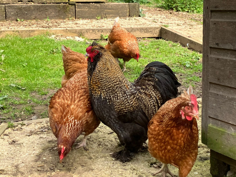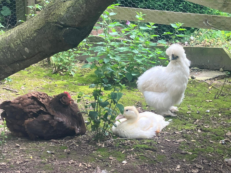 At the time of writing we have four ducks. One, young Gaby (short for Gabriel), is convinced she is a chicken. And 21 actual chickens. Thirteen are ex battery hens and go by the collective name of ‘gannets’ because they eat so much. Then there are two bantam cockerels, Mr Chips and his son Bertie; Pippa and Jude, super hens; the gentle Matilda; Angel, a silky bantam, foster mother to Gab; two ‘black devils’, because they are so bad tempered, and Satan their daughter/grandaughter,