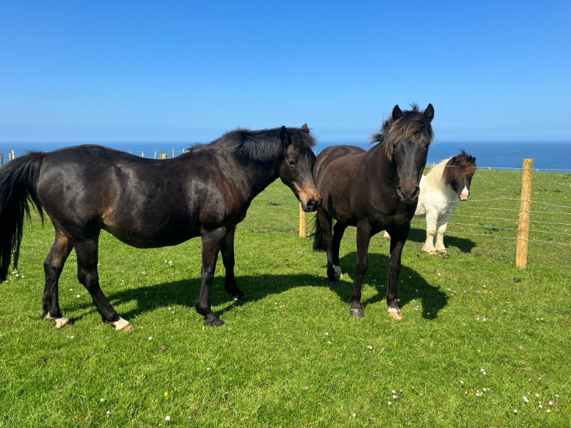 We have been fortunate to secure extra grazing up at Robin Hoods Bay so you may not see our ponies but for the record we have two Shetlands, Tony and Charlie, and two veteran riding ponies, Millie and Sooty. They are all much loved and enjoy the view and the windy weather that keeps away the flies. If we are not on site the odds are we are visiting them.