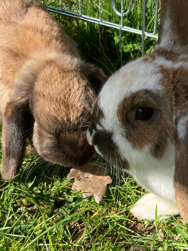 We have seven rabbits. Our first pair, Yogi and Spice, were a present from Mark for a special birthday. Then during Covid we were so sad to learn that so many bunnies had been abandoned that Mark set to work building a massive rabbit run complex and we adopted, Bramble, Bugs and Seraphina. Then came Andy Pandy and Zebedee a curious cross between a wild rabbit and an escaped pet. Despite their looks they have zero wild rabbit instincts and love their run and climbing frame