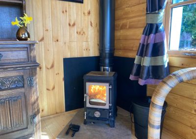 Treetops Cabin is a haven for a couple who want to connect with nature. It stands at the top of the woodland and has outside seating with a fire pit. Treetops cabin is a studio, one L shaped room with an ensuite shower room. Its about the same length as a Shepherds Hut but twice as wide, with central heating so definitely a luxury ‘glamping’ experience.